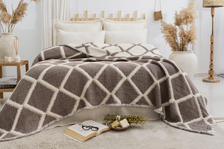 Муслінове покривало Saheser Savio 220 х 240 см. Brown коричневий
