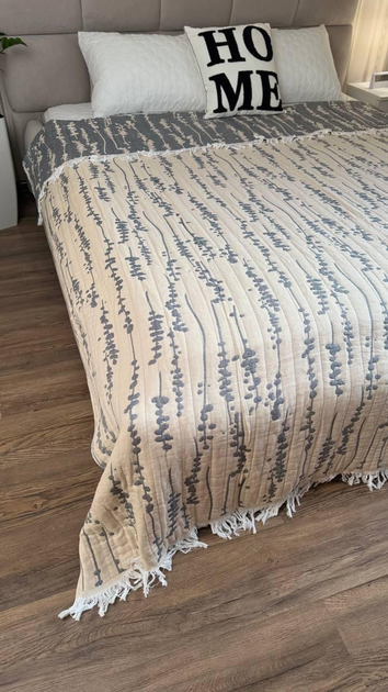 Бавовняне покривало на ліжко Євро 200х230 Сірий (Д-muslin25-006-03)