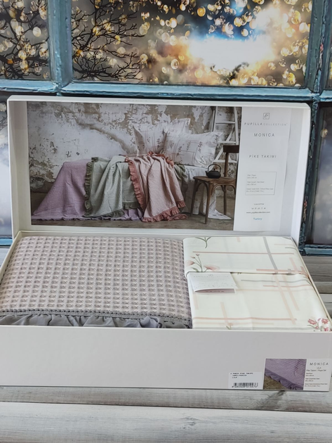 Покривало вафельне піке Pupilla Monica pudra з простирадлом та наволочками