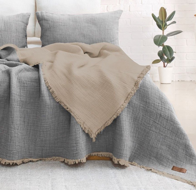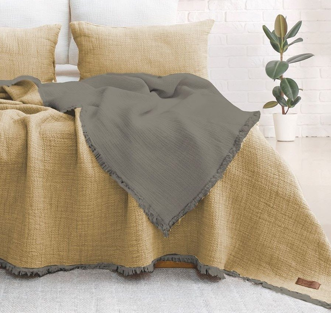 Муслинове покривало з наволочками Saheser. Alda gri-240х260+50х70 (2 шт)