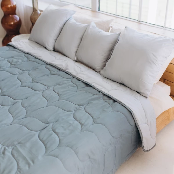 ло 180 х 210 см - 1 штНаволочка 50 х 70 см - 2 шт, двобічні, прати при температурі 40 °C, делікатний режим, відповідно до колірної гами. Хімічне чищення., Колір - світло-сірий