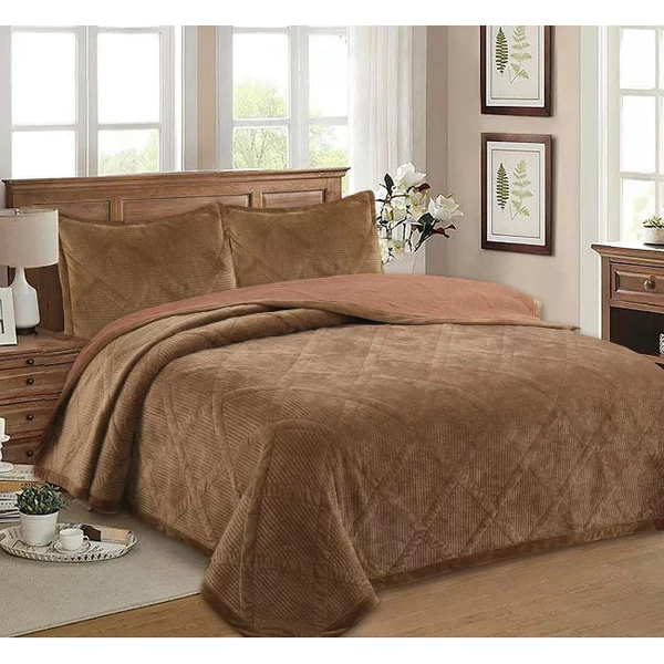 тиснення, Розміри виробу, см - 150x210 см, Сезон - літо, демісезон, весна, осінь, Склад матеріалу - 100% поліестер, 100 г/м2, наволочки: 50х70 см - 2 шт., з наволочками, прання рекомендуємо проводити за температури 40°С делікатний режим. Прати відповідно до колірної гами. Хімічне чищення, Колір - коричневий
