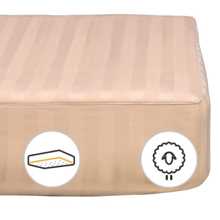 + 84 балів ITbox, Розмір - 120 x 200 см, кріплення - з гумкою уздовж периметру, наповнювач - овеча натуральна вовна: 70%, поліефірний розпушувач: 30%, сатин жакард + мікросатин, Колір - шампань