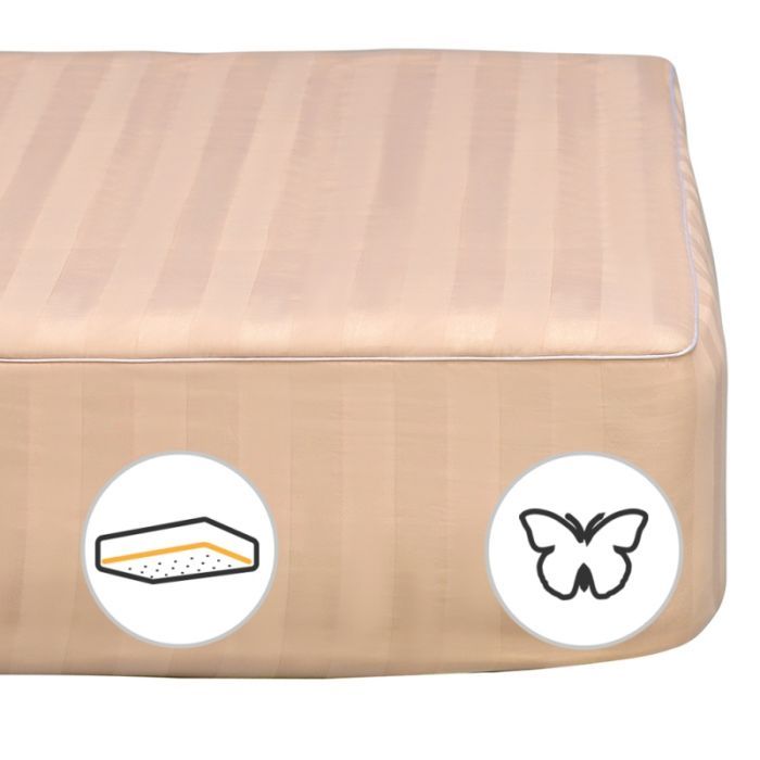 Розмір - 80 x 160 см, кріплення - з гумкою уздовж периметру, наповнювач - бамбукове волокно: 50%, поліефірний розпушувач: 50%, сатин жакард + мікросатин, Колір - шампань