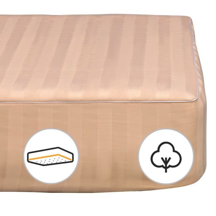 + 93 балів ITbox, Розмір - 120 x 190 см, кріплення - з гумкою уздовж периметру, наповнювач - бавовна - вага наповнювача: 295 г, сатин жакард + мікросатин, Колір - шампань