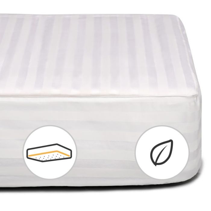 + 109 балів ITbox, Розмір - 80 x 160 см, кріплення - з гумкою уздовж периметру, наповнювач - бамбукове волокно: 50%, поліефірний розпушувач: 50%, сатин жакард + мікросатин, Колір - білий