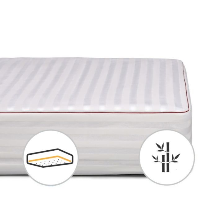 Розмір - 70 x 190 см, кріплення - з гумкою уздовж периметру, наповнювач - бамбукове волокно: 50%, поліефірний розпушувач: 50%, сатин жакард, Колір - білий