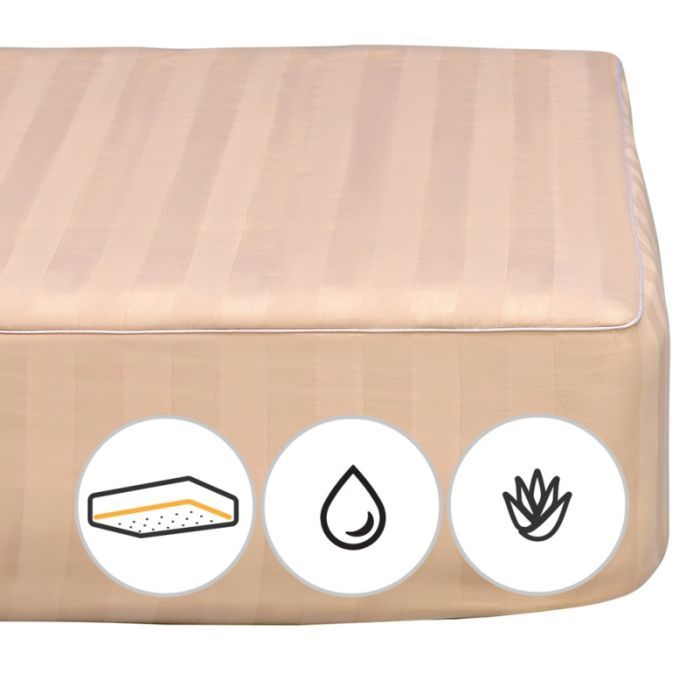 + 128 балів ITbox, Розмір - 140 x 200 см, кріплення - з гумкою уздовж периметру, наповнювач - поліестер: 95%, штучне волокно: 5%., сатин жакард + мікросатин, Колір - кремовий