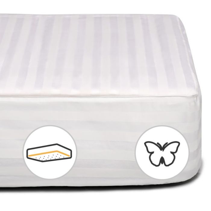 + 136 балів ITbox, Розмір - 200 x 200 см, кріплення - з гумкою уздовж периметру, наповнювач - шовк: 30%, антиалергенне штучне шовкове волокно: 70%, сатин жакард + мікросатин, Колір - білий