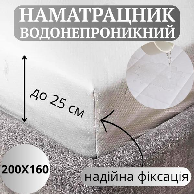 Наматрацник Водонепроникний 200х160х25 Viluta Waterproof полуторний трикотажний з бортами 25 см