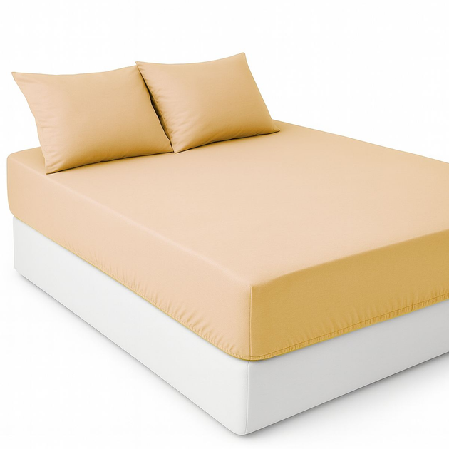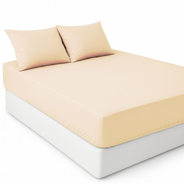 Набір наматрасник-простирадло на резинці 160х200см + 2 наволочки – Бежевий