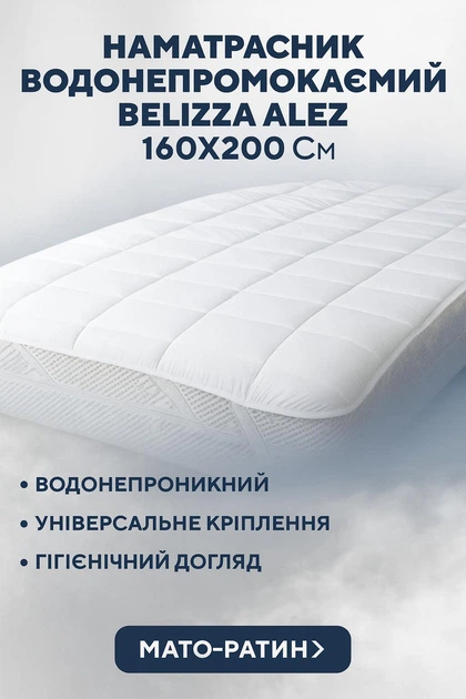 Наматрацник водонепроникний Belizza Alez 160200 см, дихаючий, м’який, з 4 резинками, турецька якість, легкий догляд