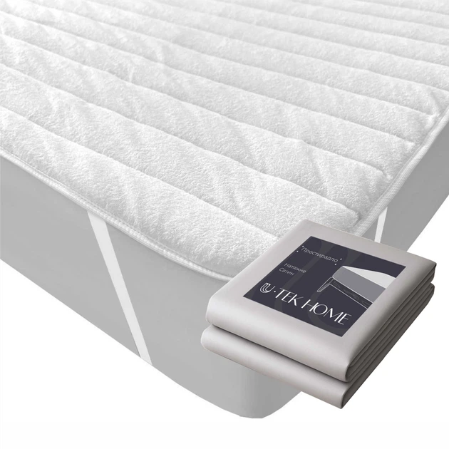 Набір U-tek Наматрацник стьобаний махровий Terry Lux резинка по кутах 160х200 см + Простирадло натяжне Сатин Boston Soft Gre