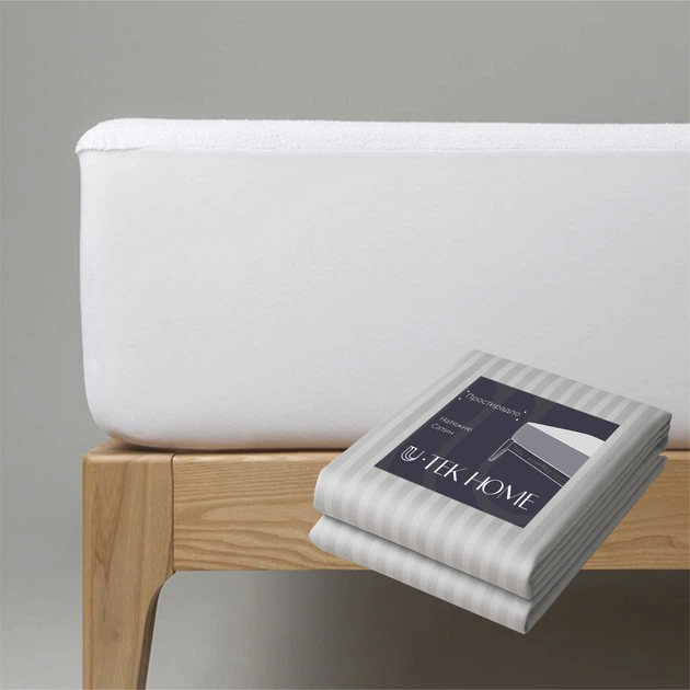 Набір U-tek Наматрацник Delight Водонепроникний з резинкою по периметру 160x200 см + Простирадло натяжне Сатин Boston Ivory