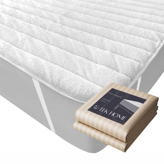 Набір U-tek Наматрацник стьобаний махровий Terry Lux резинка по кутах 180х200 см + Простирадло натяжне Сатин Boston Ivory Be