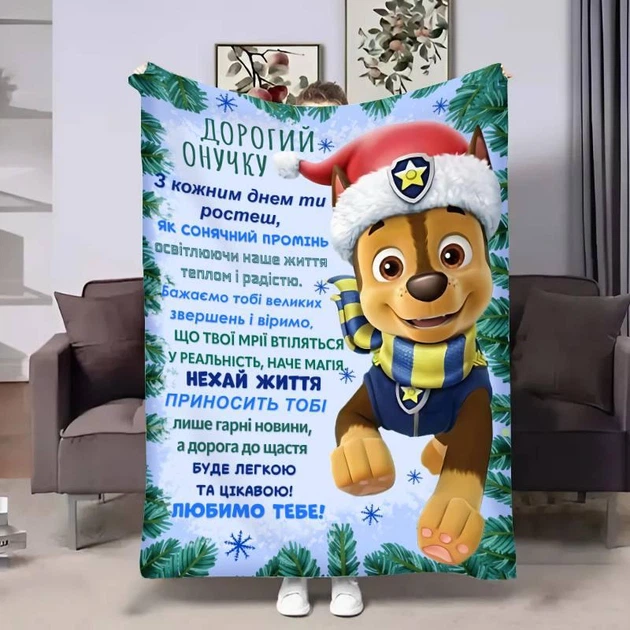Плед 3D з побажаннями для онука Різдвяний патруль 4255A 17685 160х200 см 4968423