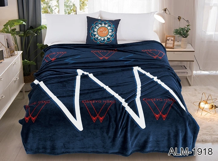 Плед-покривало TAG Велсофт (мікрофібра) 160х220 см Візерунки корона синій ALM-188