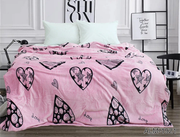 Плед-покривало TAG Велсофт (мікрофібра) 160х220 см серця рожевий ALM-1921
