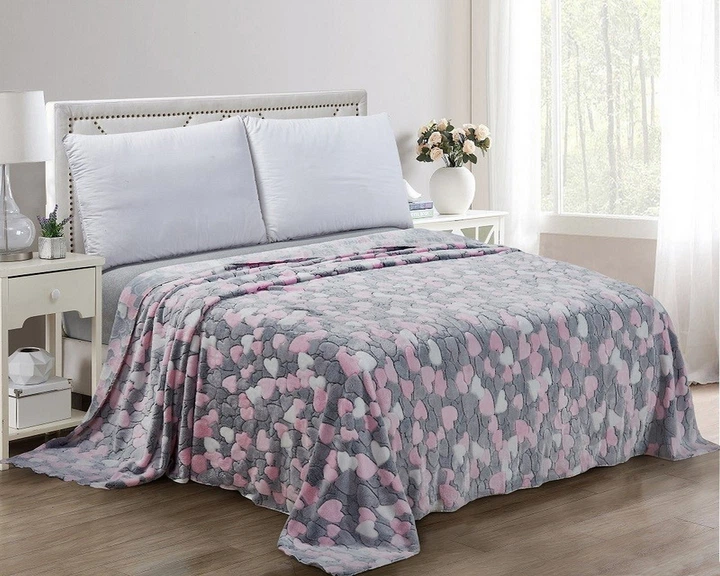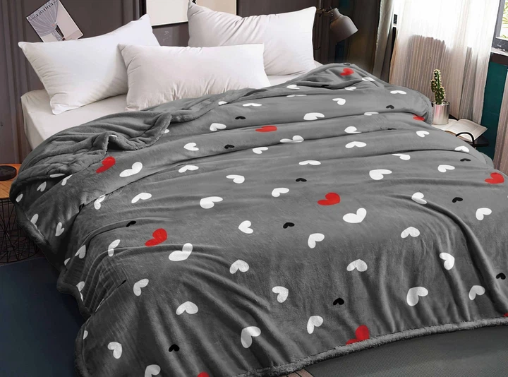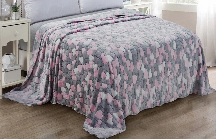 Плед Велсофт Sofia. Сіро-рожеві серця (СПЛ062)-200х210