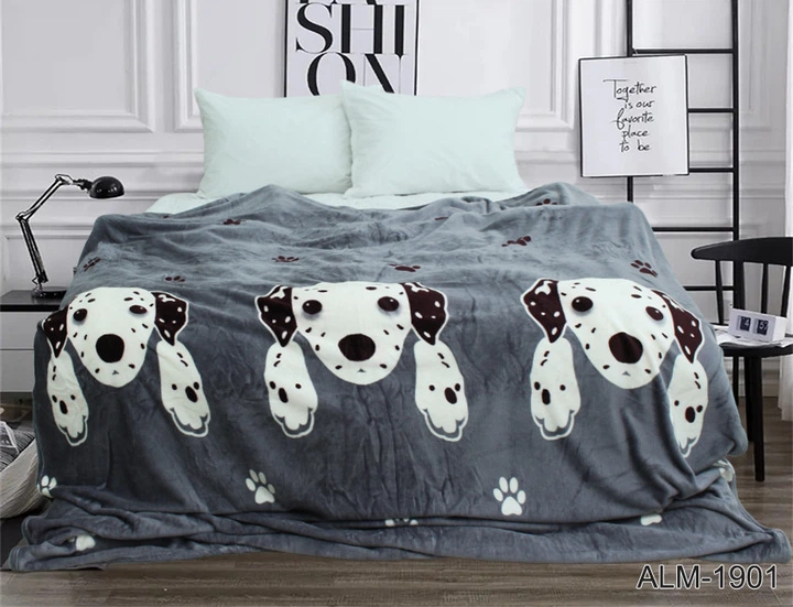 Плед-покривало TAG Велсофт (мікрофібра) 200х220 см собачки сірий ALM-1901