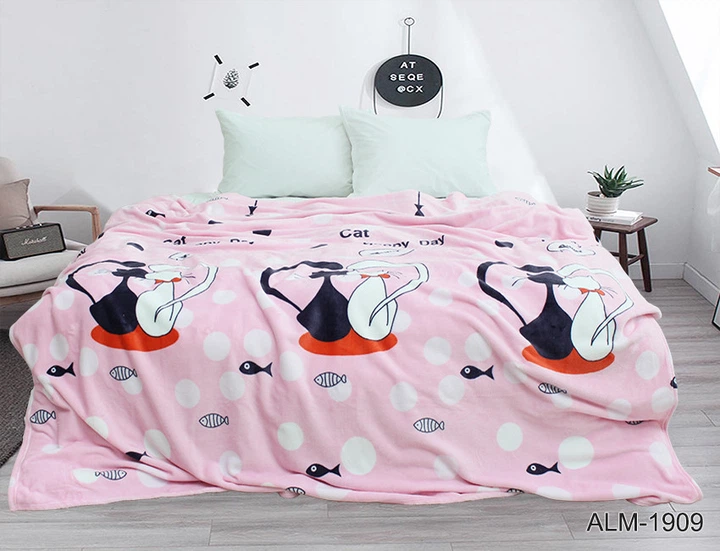 Плед-покривало TAG Велсофт (мікрофібра) 200х220 см кішки рожевий ALM-1909