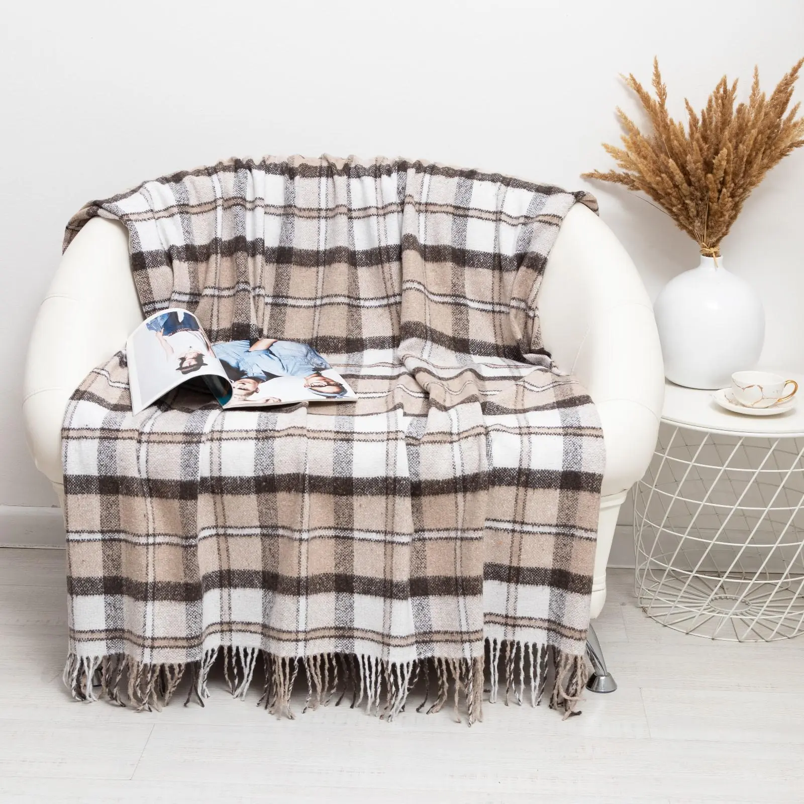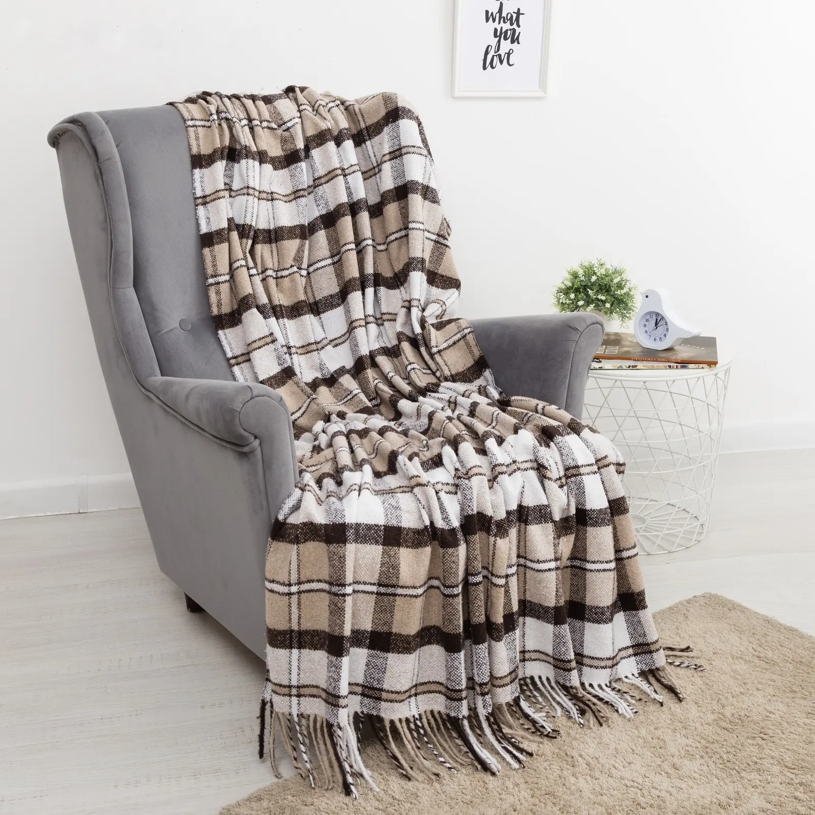 Плед вовняний Vladi Палермо 140x200 біло-бежево-коричневий