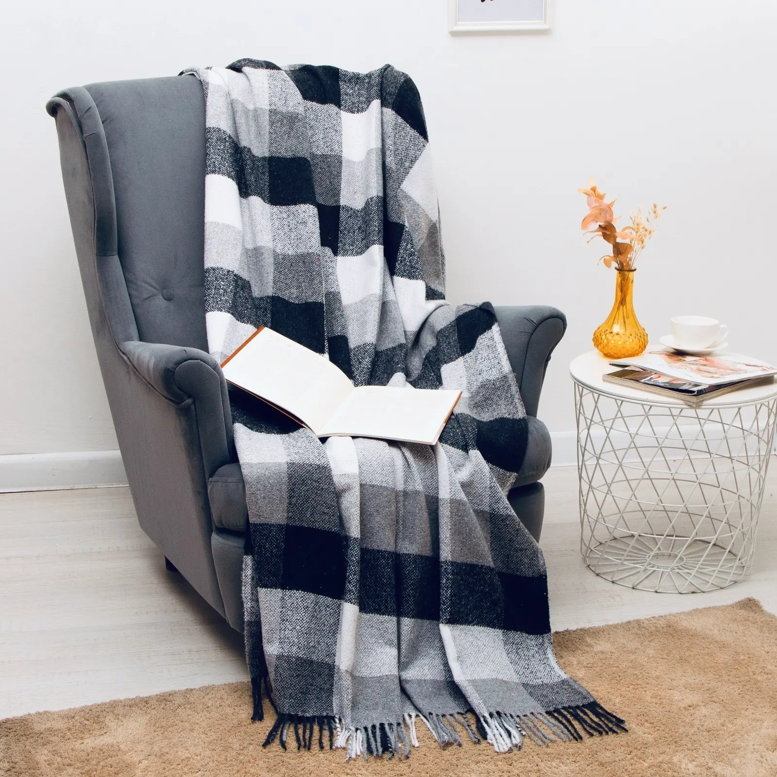 Плед вовняний Vladi Палермо 140x200 темно-сірий-сіро-білий 7