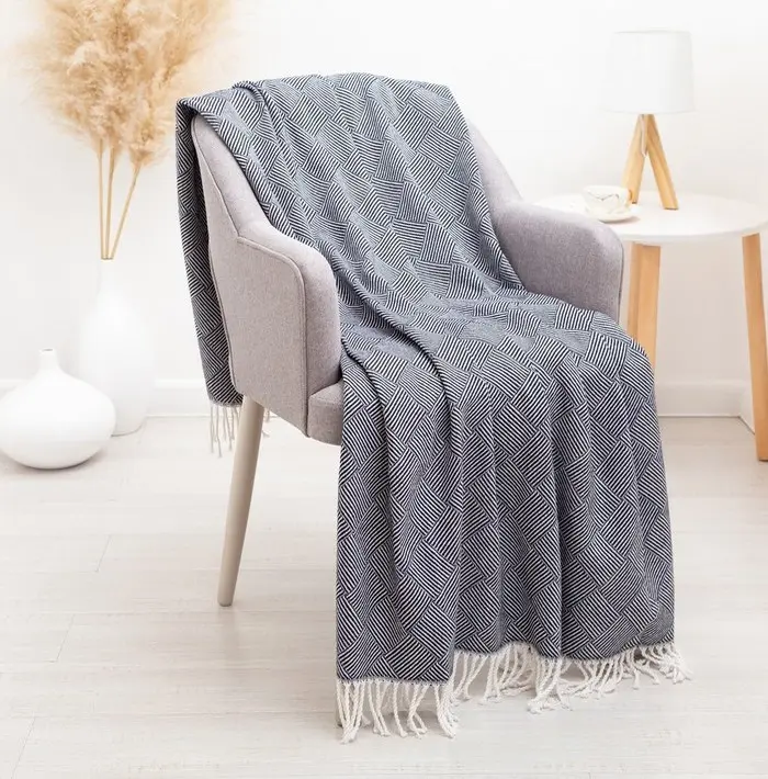 Плед бавовняний Vladi Валенсія Паркет 140х200 біло-темно-синій