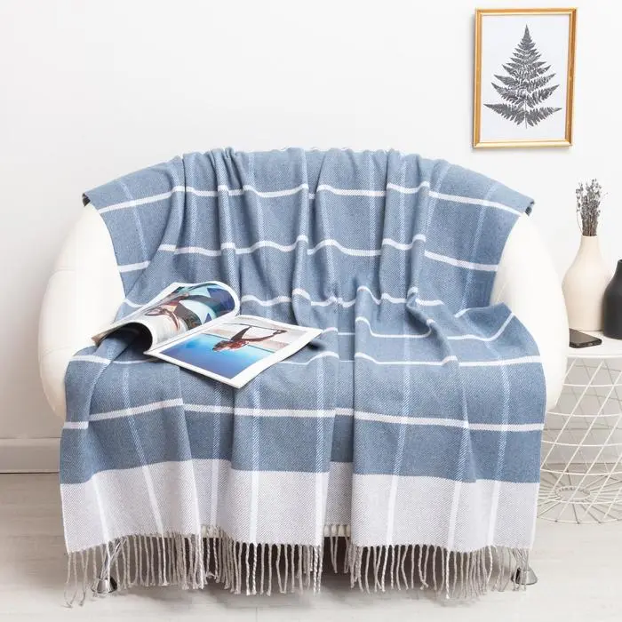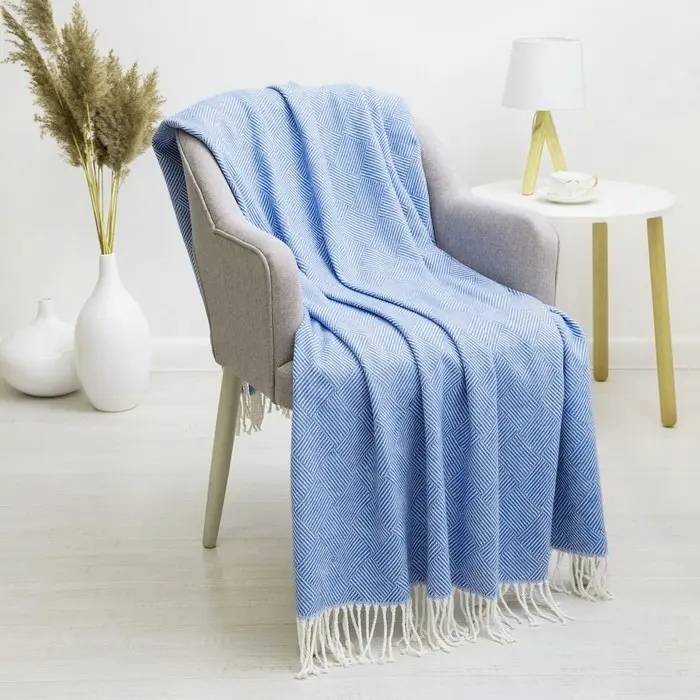 Плед бавовняний Vladi Валенсія Антоніо 140х200 біло-яскраво-блакитний