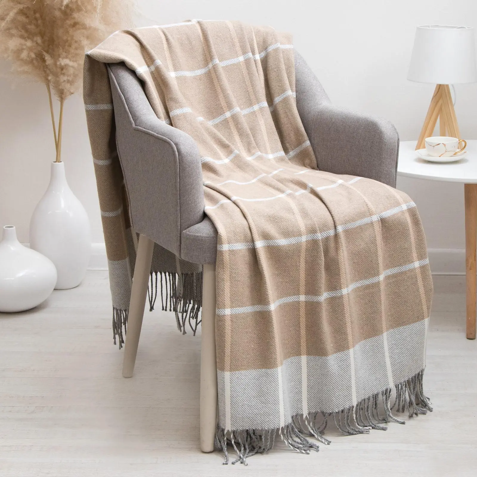 Плед бавовняний Антоніо Валенсія Vladi 140х200 біло-темно-сірий