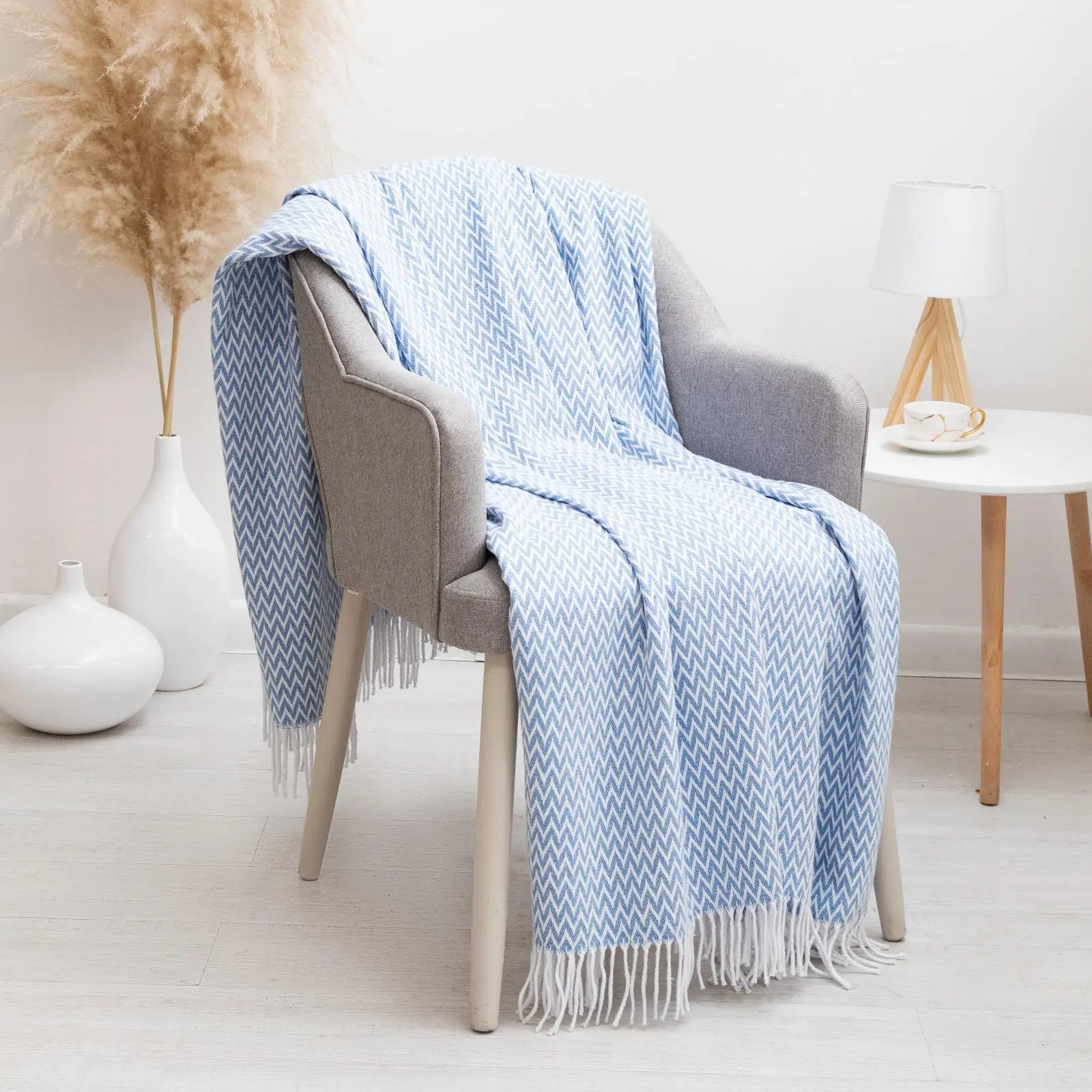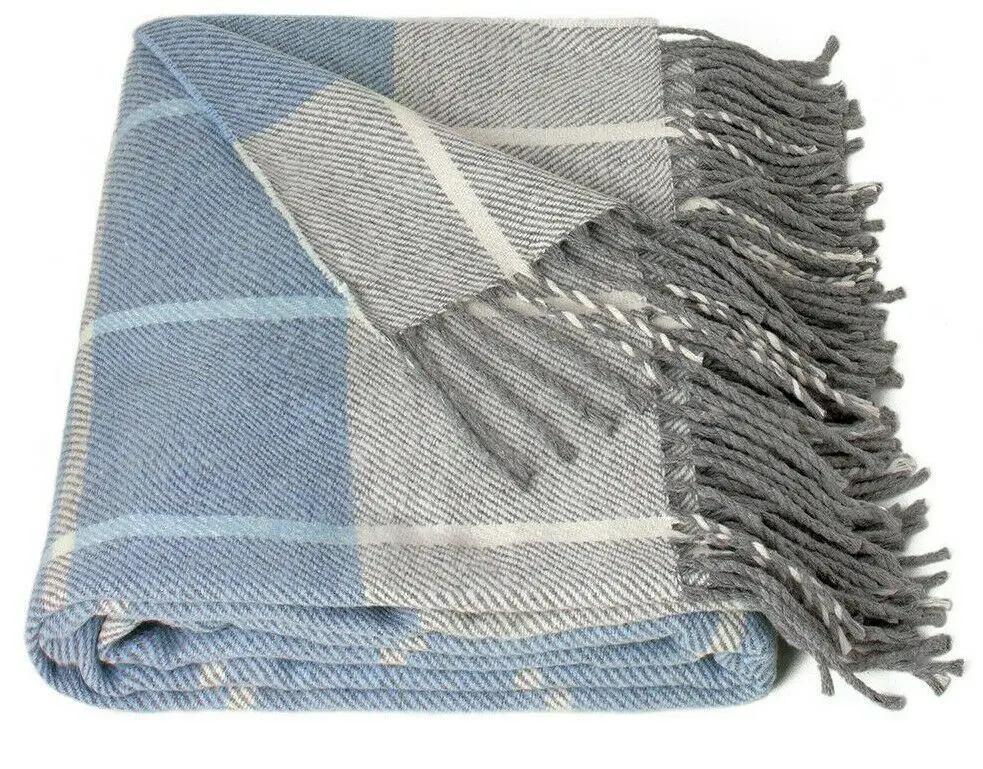 Плед бавовняний Vladi Валенсія Гаррі 140х200 білий-дим-яскраво-блакитний