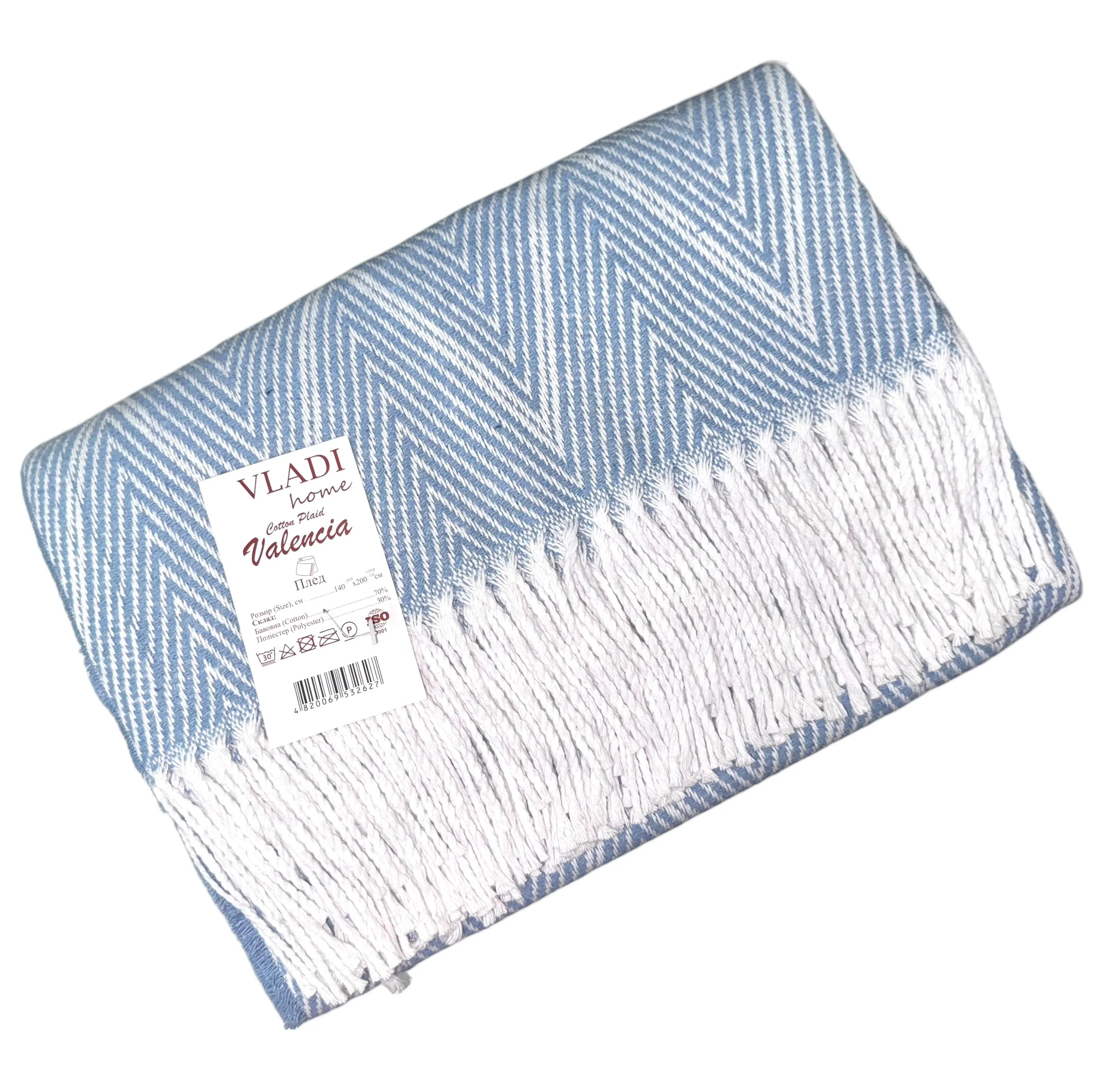 Плед бавовняний Vladi Валенсія ViVi 140х200 біло-блакитний