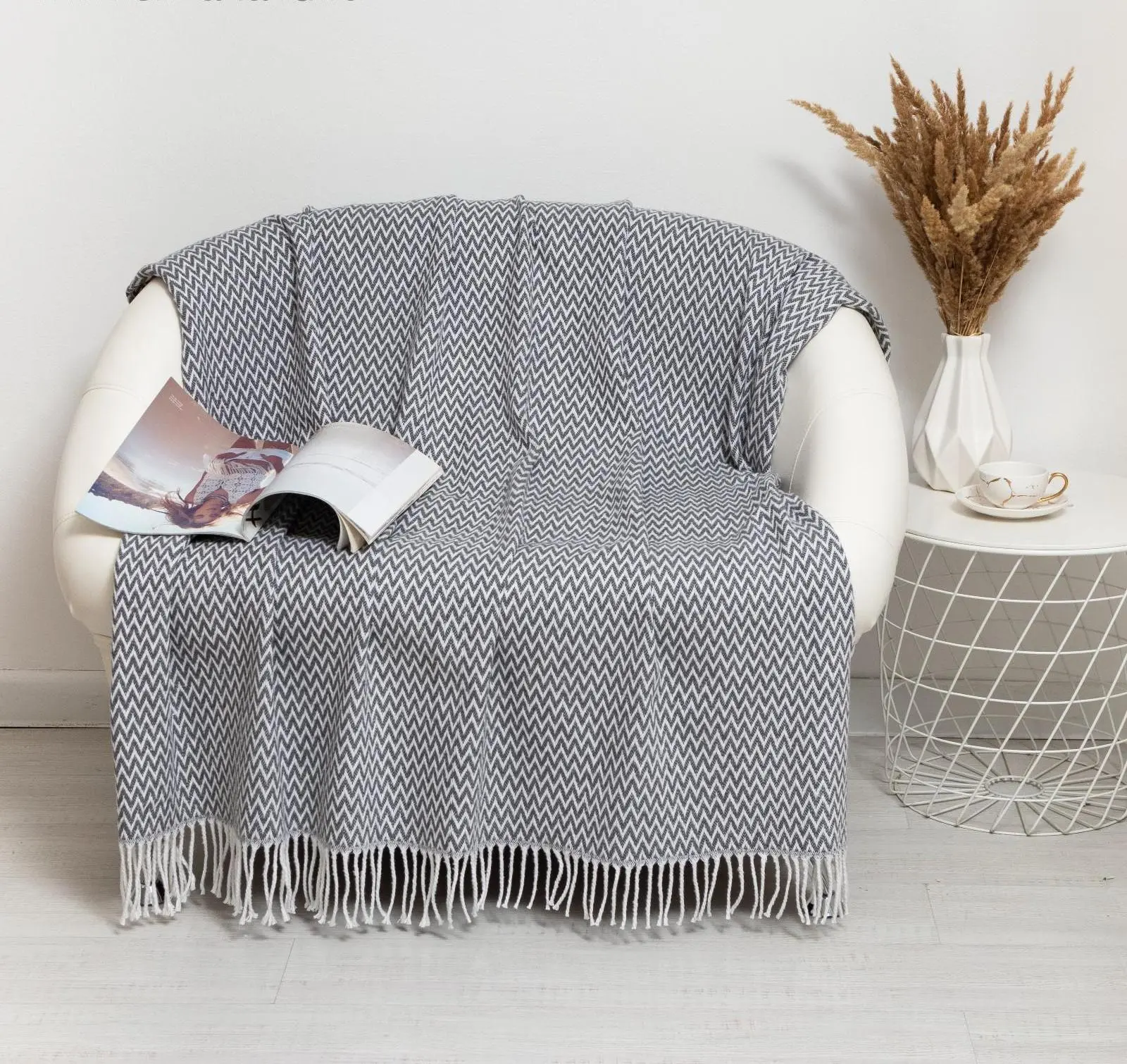 Плед бавовняний Vladi Валенсія Гаррі 140х200 біло-сірий-темно-сірий