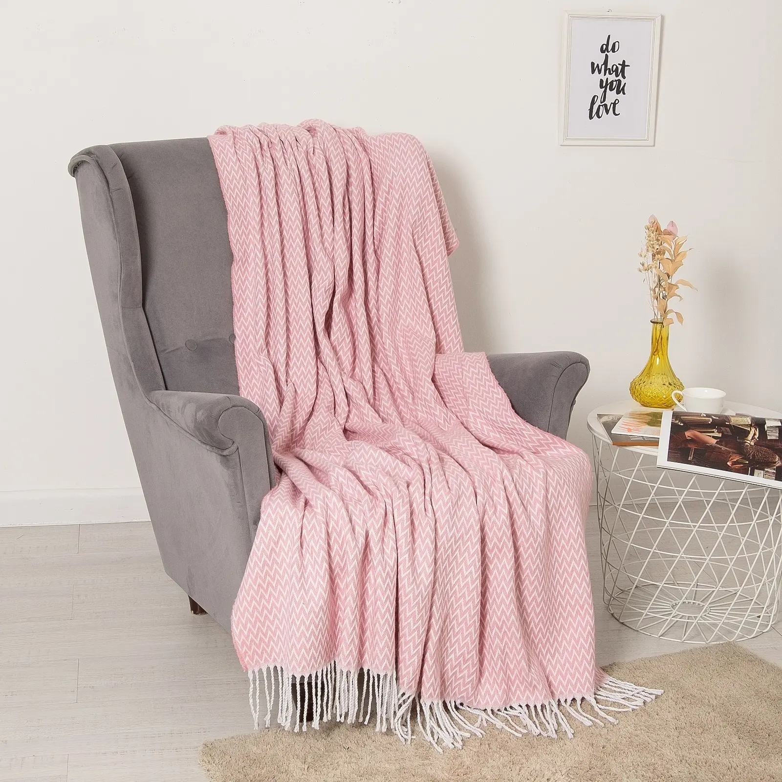 Плед бавовняний Vladi Валенсія Антоніо 140х200 біло-яскраво.рожевий