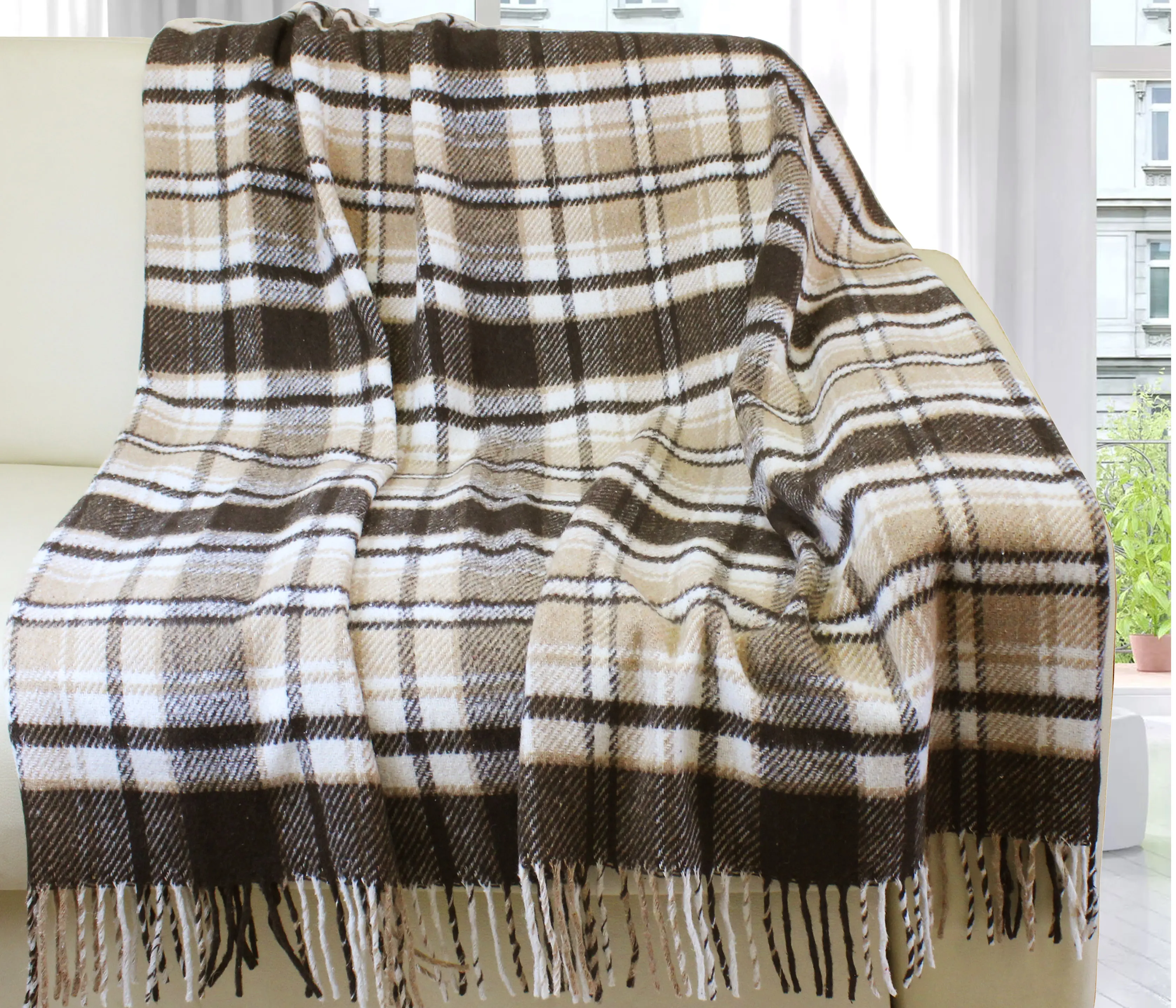 Плед вовняний Vladi Метро 140х200 біло-бежево-коричневий 1