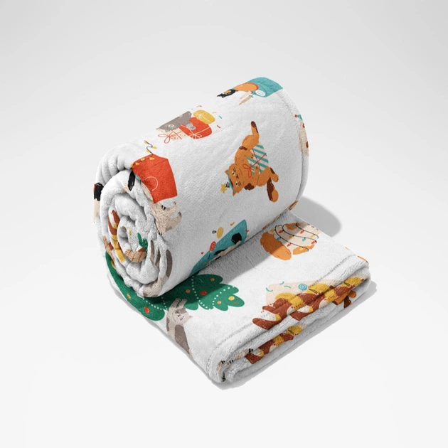 Новорічний плед, Велсофт, Білий з принтом, 200 х 220 см Євро