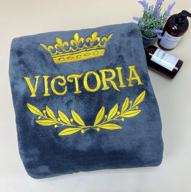 Плюшевий плед з вишивкою Family Tradition велсофт 200х220 см темно-сірий Вікторія