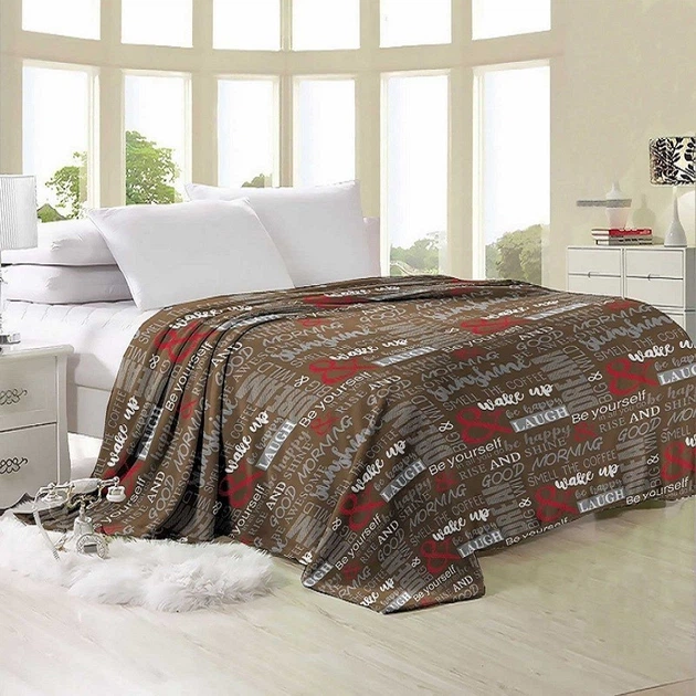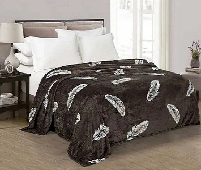Плед-покривало з флісу Перо на шоколаді ТЕТ-а-ТЕТ 220х240 см Велсофт (мікрофібра) ТТП66-3