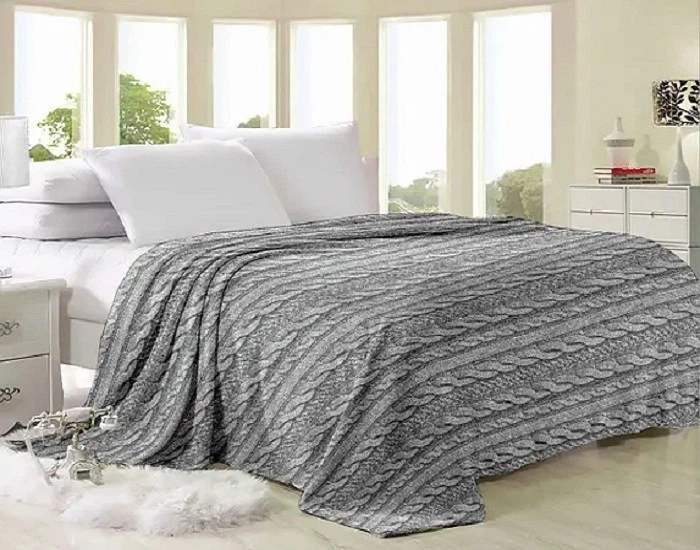 Плед-покривало з флісу В'язанка сіра ТЕТ-а-ТЕТ 220х240 см Велсофт (мікрофібра) ТТП74-3