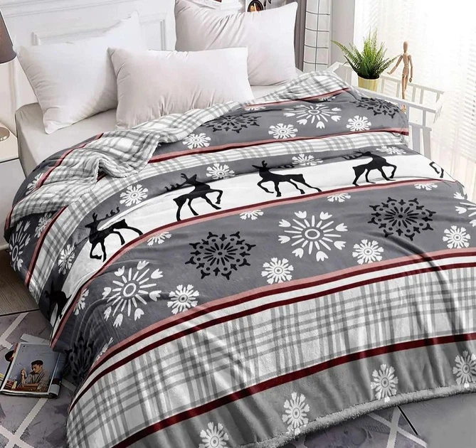 Плед-покривало з флісу Олені на сірому ТЕТ-а-ТЕТ 220х240 см Велсофт (мікрофібра) ТТП162-3