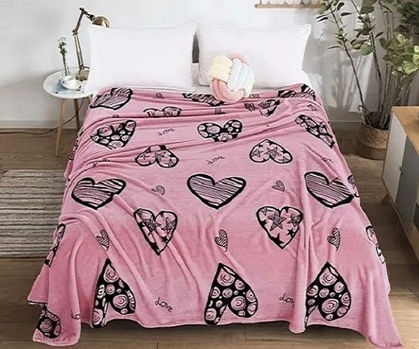 Плед-покривало з флісу Серця на розовому ТЕТ-а-ТЕТ 220х240 см Велсофт (мікрофібра) ТТП49-3
