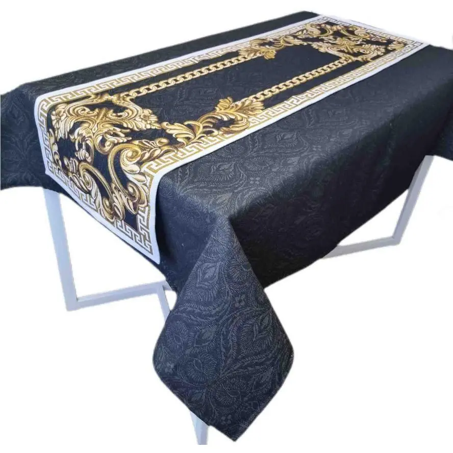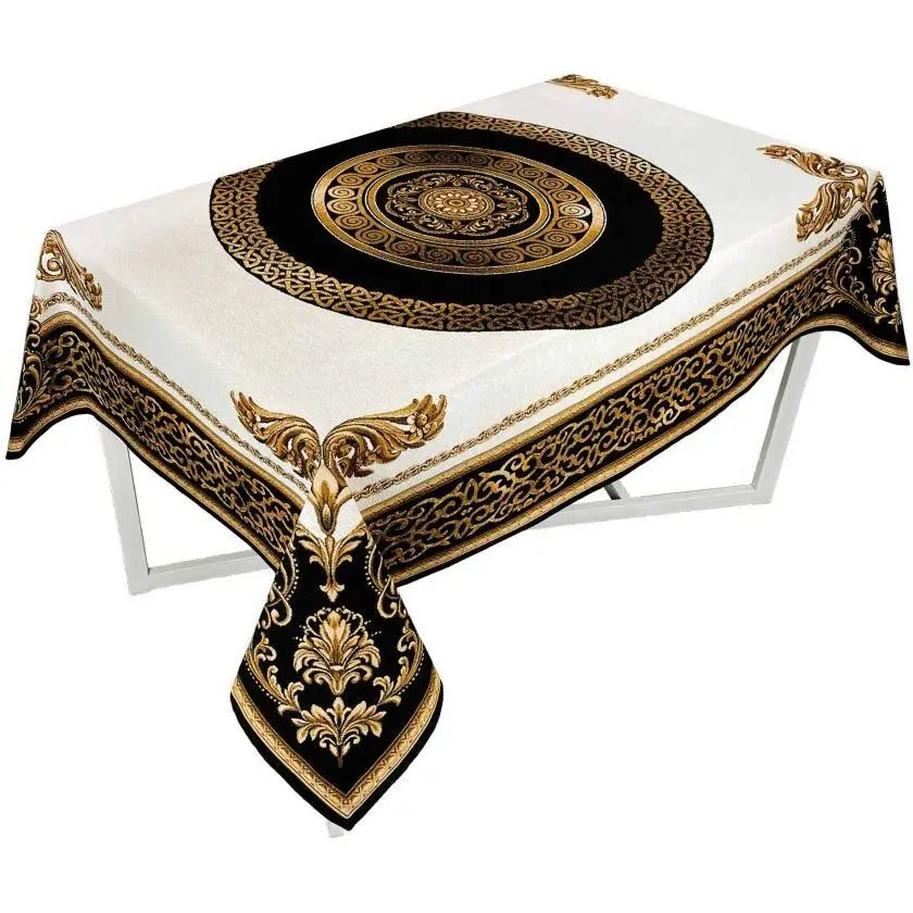 Скатертина Прованс Baroque 140х135 см чорно-біла з золотим (25407)