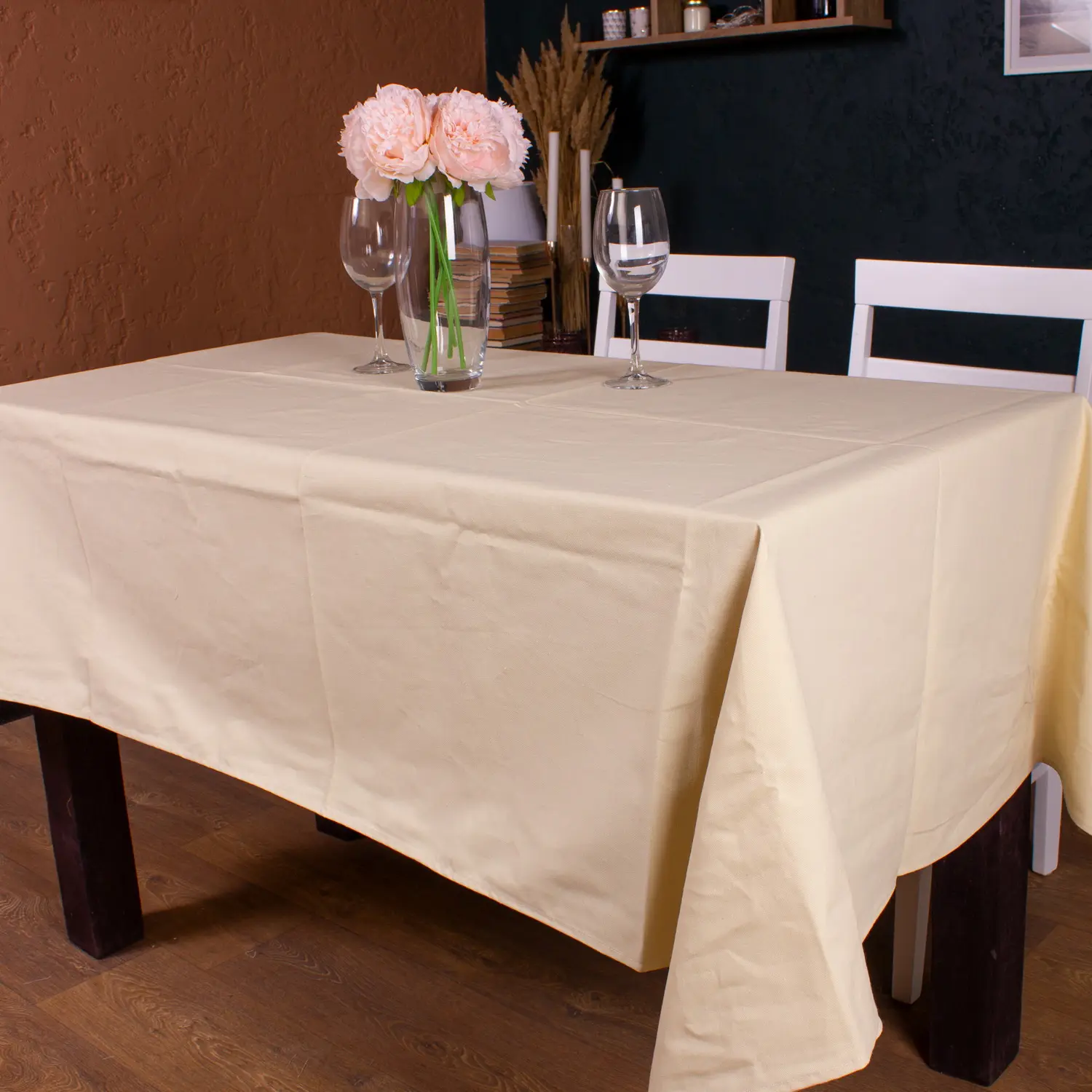 Скатертина MirSon №204 Creamy 260х130 см рогожка кремова