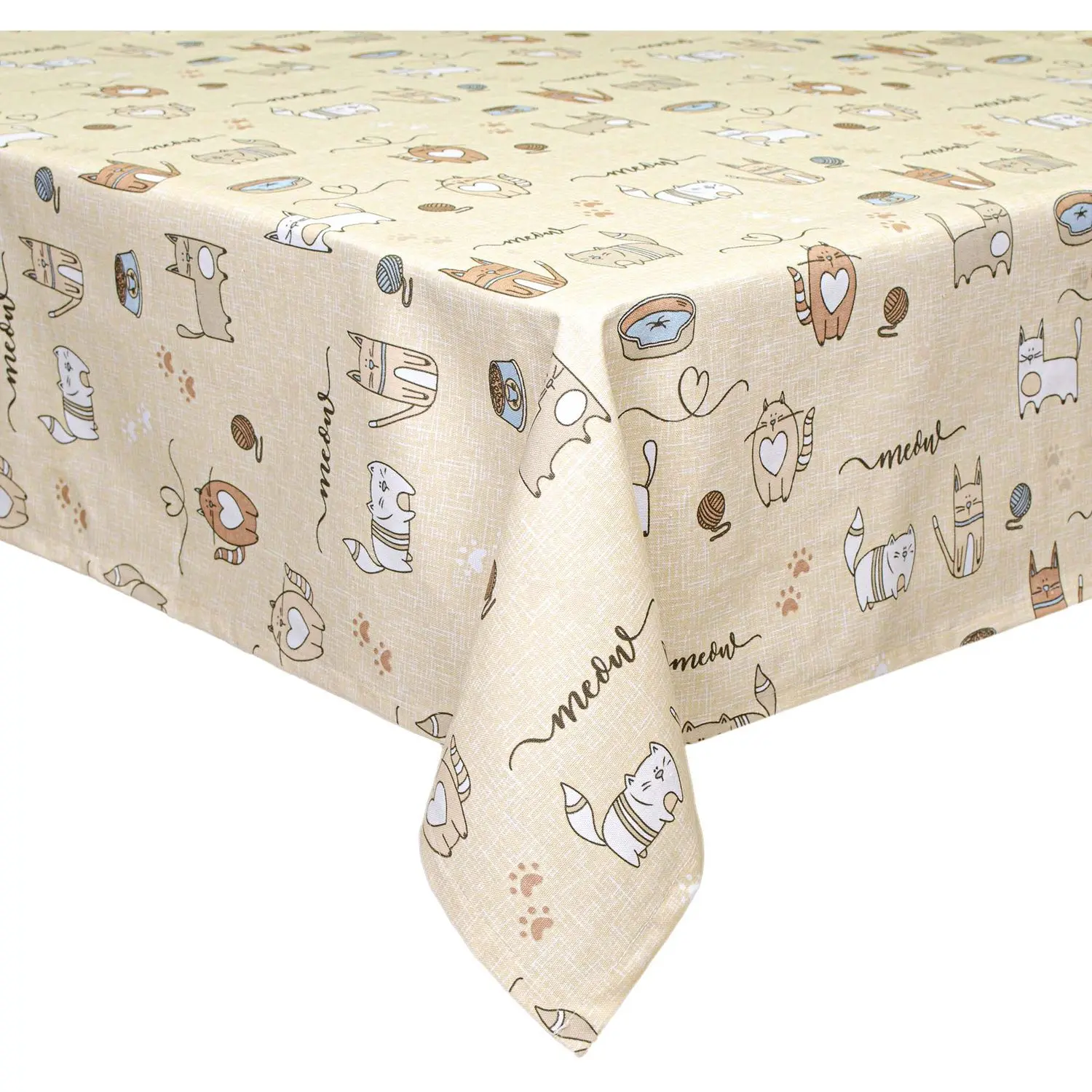 Скатертина Home Line Кіт на кухні, напівпанама, 150х120 см, пісочна (175271)