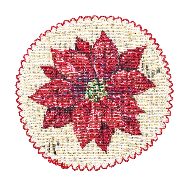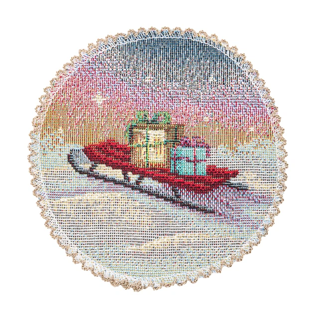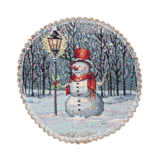 Серветка-підкладка новорічна гобеленова "Різдвяна класика" (срібний люрекс) (ROUND1391NA-10D)
