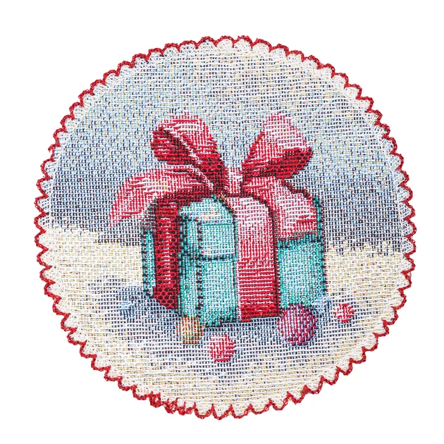 Серветка-підкладка новорічна гобеленова "Різдвяна класика" (срібний люрекс) (ROUND1391NA-10D)
