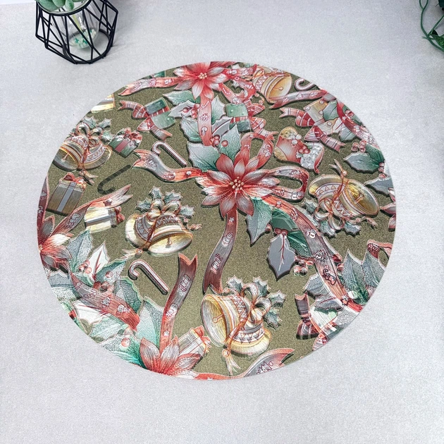 Кругла новорічна серветка-підтарільник 38 см Зелені дзвіночки (63Д)