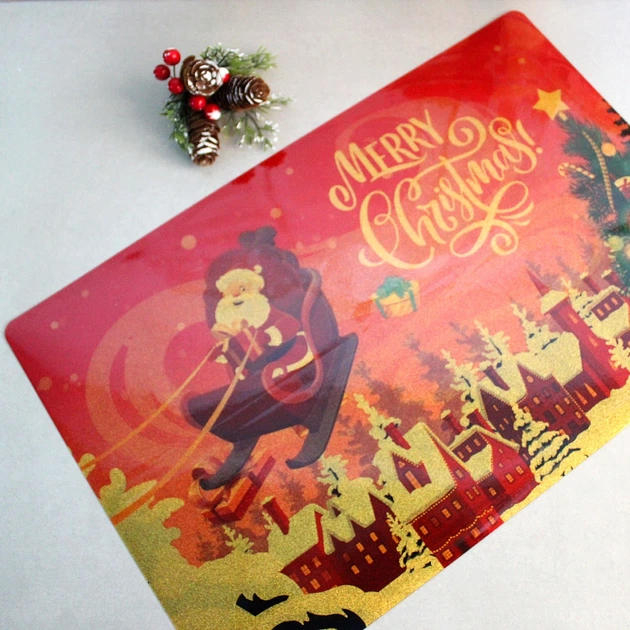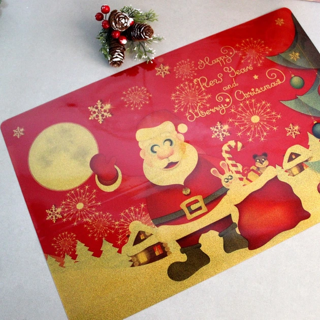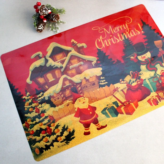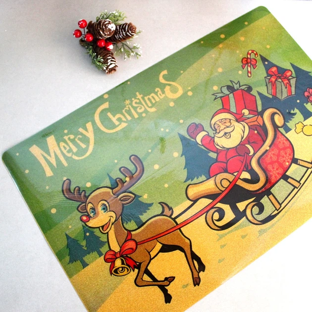 Новорічна серветка двостороння Дід Мороз з блискітками 30 * 45 см НЕПРОМОКАЛЬНА