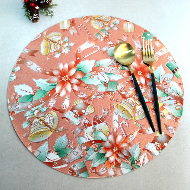 Кругла помаранчева серветка для новорічного столу 38 см (НГ-3)