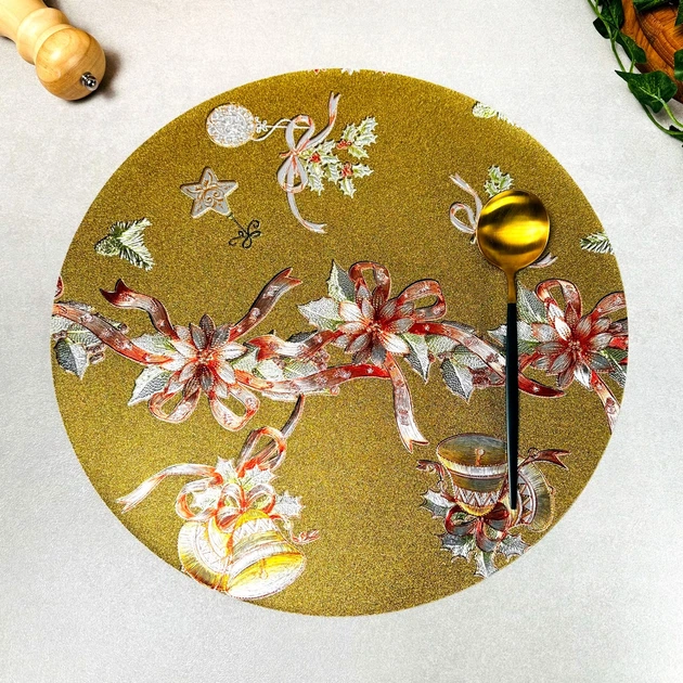 Зелена кругла серветка на новорічний стіл 38 см, новорічні товари (НГК-1)